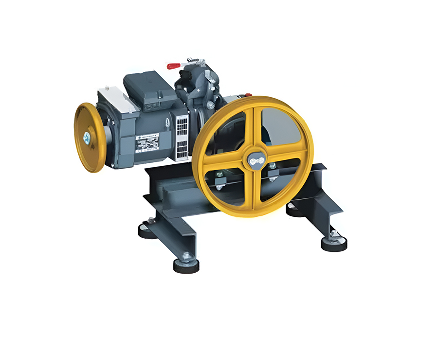 Geared traction machines are driven by AC electric motors. Geared machines use worm gears to control mechanical movement of lift cars by “rolling” steel hoist ropes over a drive sheave which is attached to a gearbox driven by a high speed motor. An electrically controlled brake between the motor and the reduction unit stops the lift, holding the car at the desired floor level.